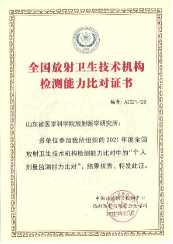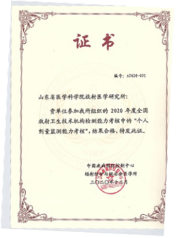 主要从事放射工作人员外照射个人剂量检测,核医学工作人员内照射检测,拥有Harshaw TLD 5500热释光剂量计(美国Thermo)、美国Mirion RE-2000A全自动热释光剂量仪、全自动TASLIMAGE固体核径迹测量系统等多套先进仪器,可从事X射线、γ射线及中子外照射Hp(10)检测,X射线、γ射线Hp(3)及Hp(0.07)检测,氡内照射及从事甲癌治疗核医学工作者内照射剂量估算。连续多年参加国家个人剂量比对获得优秀。