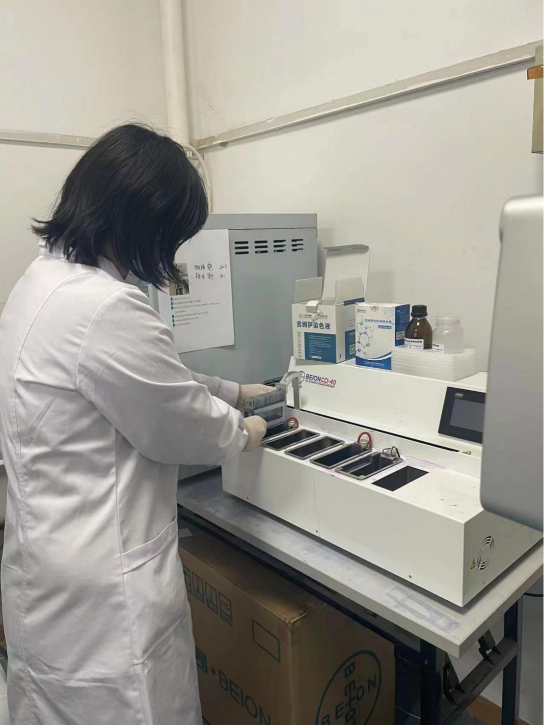 实验室拥有开展一般分子生物学实验所需的仪器设备及场所,拥有全自动染色体、微核收获系统、全自动染色体扫描分析系统、全自动微核扫描分析系统。主要开展辐射生物效应、辐射生物标志物、辐射敏感性研究以及DNA损伤修复机制的研究,实验室常规开展外周血淋巴细胞染色体畸变分析、常规培养法微核分析、胞浆分裂阻滞法微核分析、荧光原位杂交技术分析染色体易位等细胞遗传学实验。