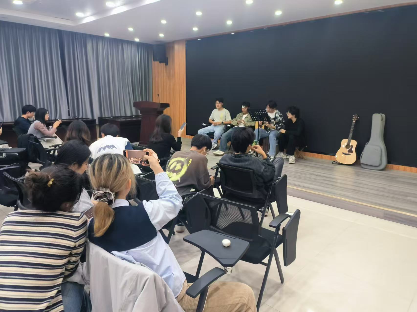 弦动心声,乐享共鸣。为助力校(院)全国文明校园创建,丰富校园文化生活,10月26日晚,公司组织了一场别开生面的吉他弹唱音乐交流会,吸引了众多热爱音乐的同学参与。