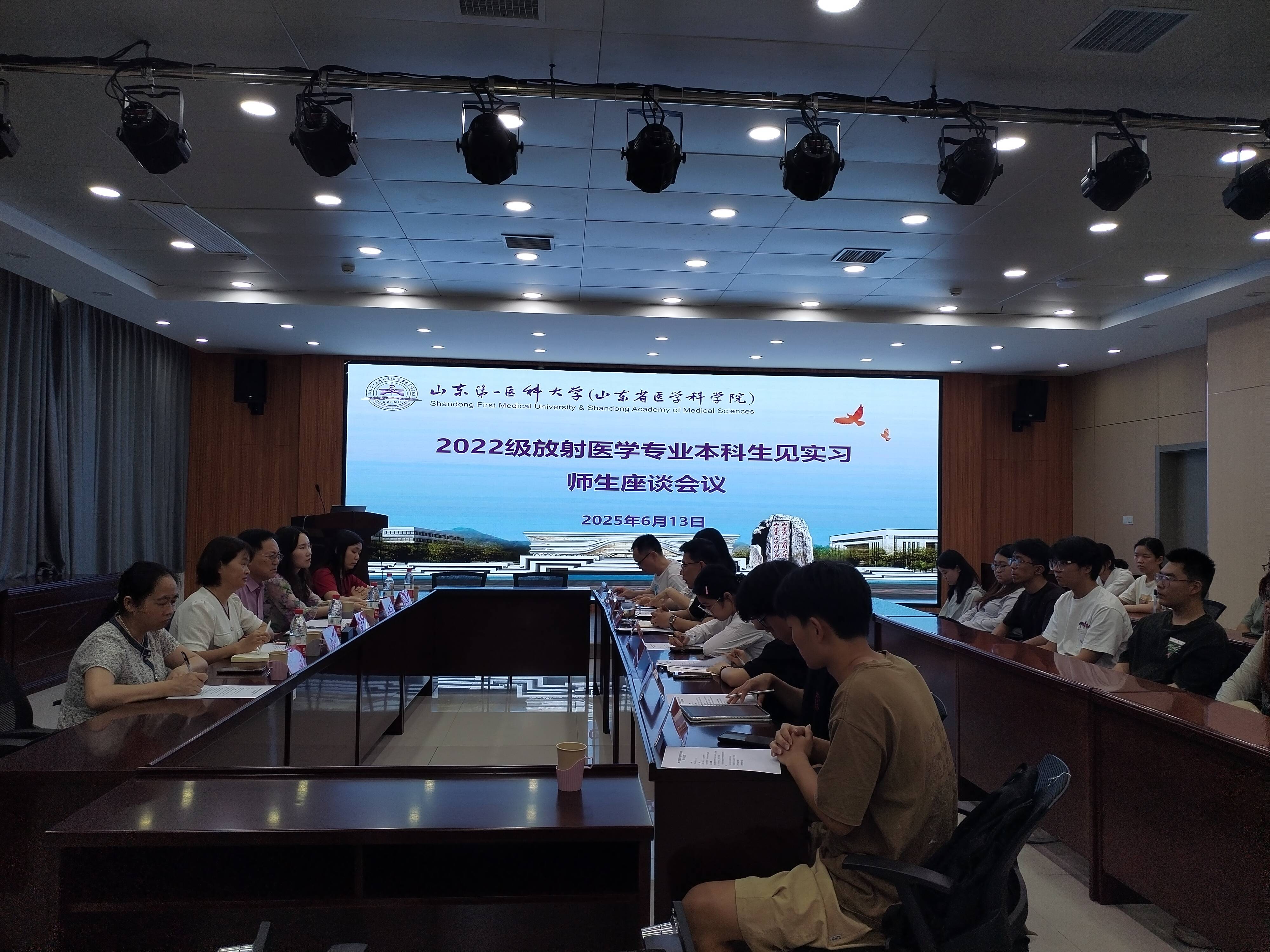 6月13日,mk体育联合山东省立第三医院(山东省消化病医院)、mkmksport肿瘤临床公司召开2022级放射医学专业本科生见实习座谈会。院(所)党委(党总支)书记张勇、副书记李冬梅,山东省立第三医院教育培训部主任张晓丽,肿瘤临床公司教学管理部名誉主任王家林等领导专家和2022级放射医学专业本科生参加座谈。
