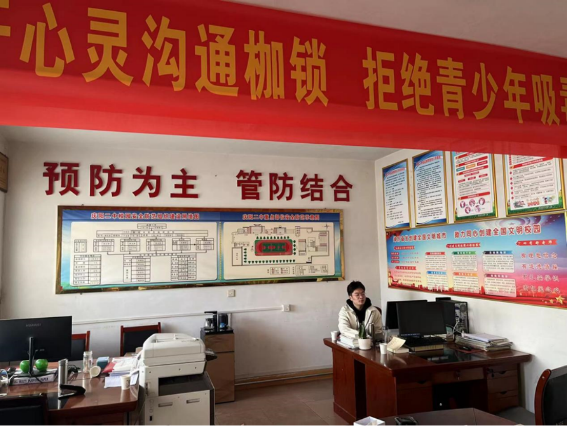 2023级放射医学本科生王一轩同学在“寒假老员工返家乡社会实践”活动中,在母校庆阳二中进行了禁毒宣传活动。走进课堂,与员工面对面交流,向他们讲解毒品的危害和如何预防毒品侵害。通过举办讲座、发放宣传册等方式,向员工普及禁毒知识,引导他们树立正确的价值观和生活观。