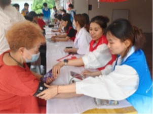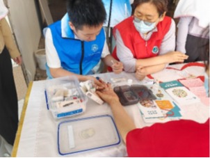 活动中,院(所)青年志愿者服务队的同学们在附属肿瘤医院的医护人员指导下,为社区居民测量血压和血糖,科普健康知识,帮助他们了解自身的健康情况及注意事项,并提出科学饮食建议,引导居民加强自我保健,生活中适当运动、合理膳食、规律作息,从而养成健康的生活方式和习惯。活动最后,志愿者们与前来义诊的老人一起学习太极拳、八段锦,志愿者和社区居民们在一招一式中拉近了彼此之间的距离,举手投足间也展现了中华养生文化的魅力。此次活动得到了社区居民的一致好评。