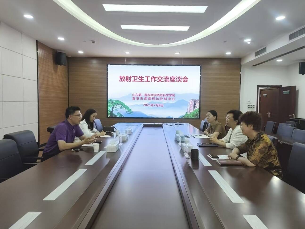7月2日,mk体育党委(党总支)书记张勇一行赴泰安市疾病预防控制中心,双方围绕放射卫生领域战略合作展开座谈,聚焦校地协同机制构建与高质量发展路径,深入交流合作事宜。泰安市疾病预防控制中心党委副书记、主任王英,党委委员、副主任杨冬芳及放射卫生科负责人出席座谈会。