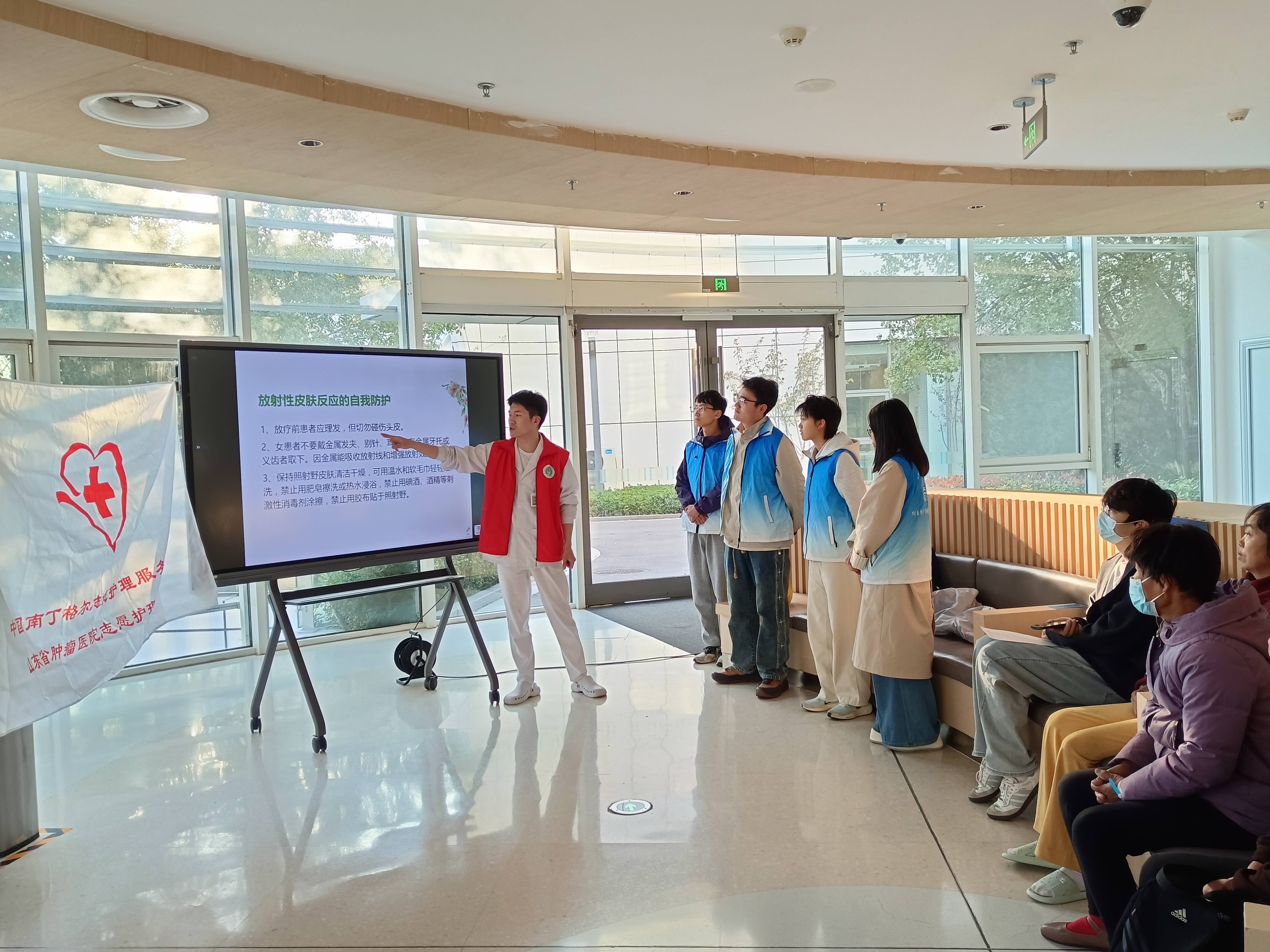 本次活动聚焦人文素养培育与放疗知识普及,为社区居民介绍放疗后的康复注意事项与相关健康知识。志愿者们积极配合医生开展讲解,并主动学习放疗前准备与防护要点。在放疗后遗症科普环节,志愿者与现场老年居民共同聆听,深入了解放疗后的科学防护方法,避免二次损伤。活动过程中,全体志愿者全心投入,协助医生解答居民疑问,引导大家树立积极治疗心态,科学面对放疗流程,受到社区居民的广泛认可。