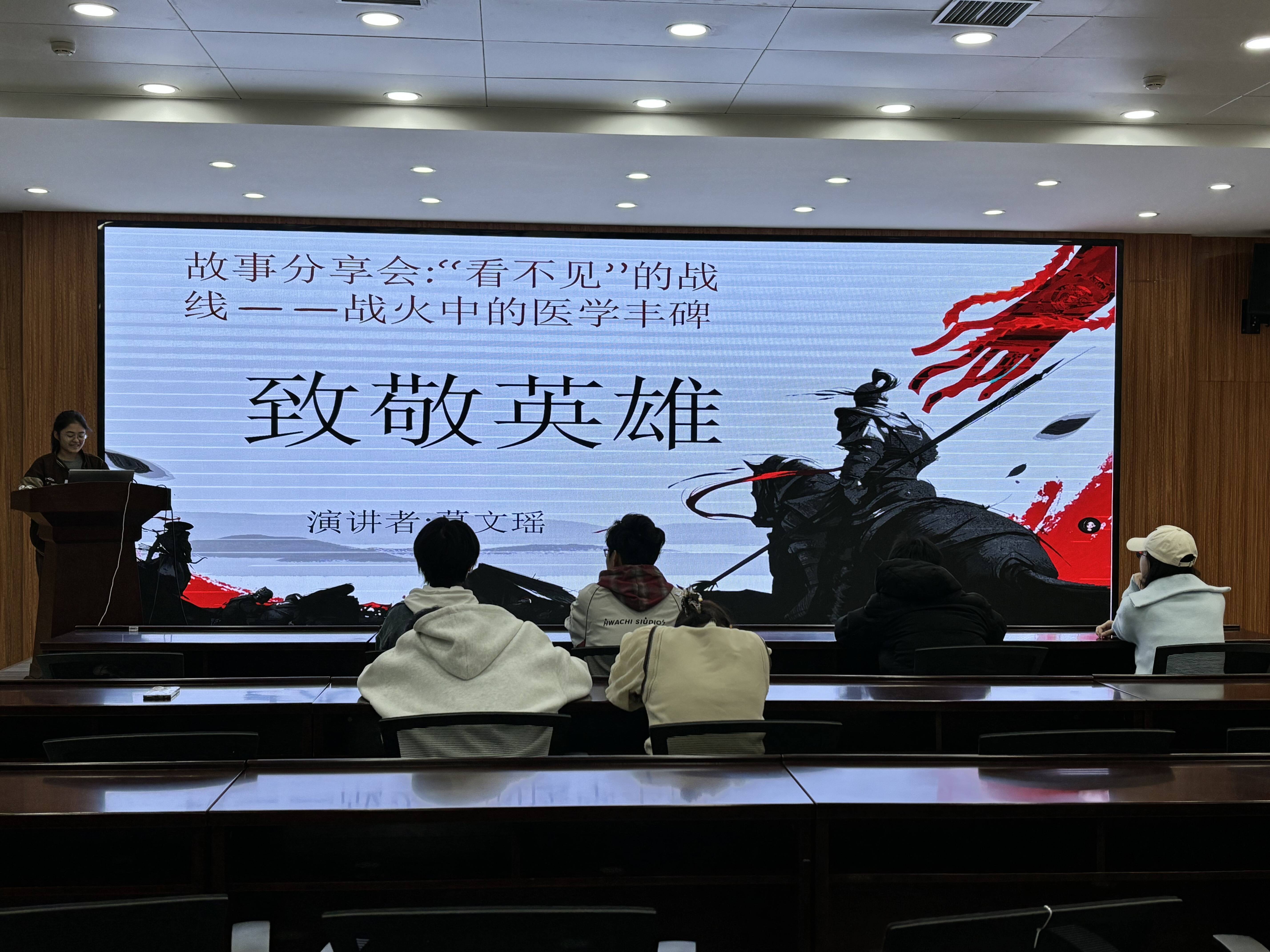 活动在庄重而热烈的氛围中拉开帷幕。在主题故事分享环节,三位同学以真挚的情感和生动的讲述,带领在场师生走进那段波澜壮阔的历史,再现老一辈医学工作者在“看不见”的战线上所铸就的医学丰碑。