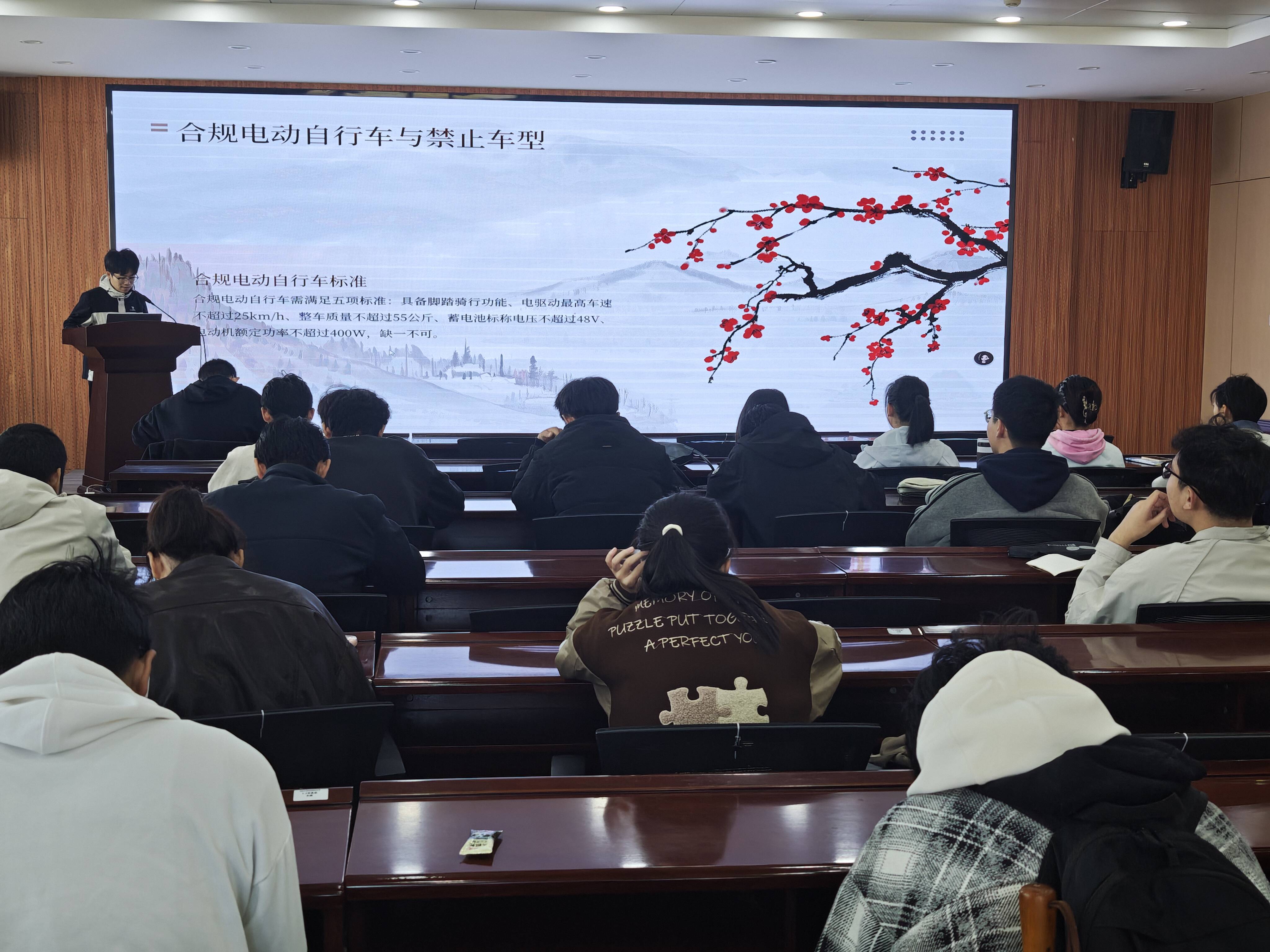 在校园安全环节,组织委员邱文武同学宣讲了电动自行车管理规定,明确了合规车辆标准、登记流程、行驶与停放要求,并提醒新生原则上不得购买电动车,现有车辆须按规定区域停放,严禁入楼充电。