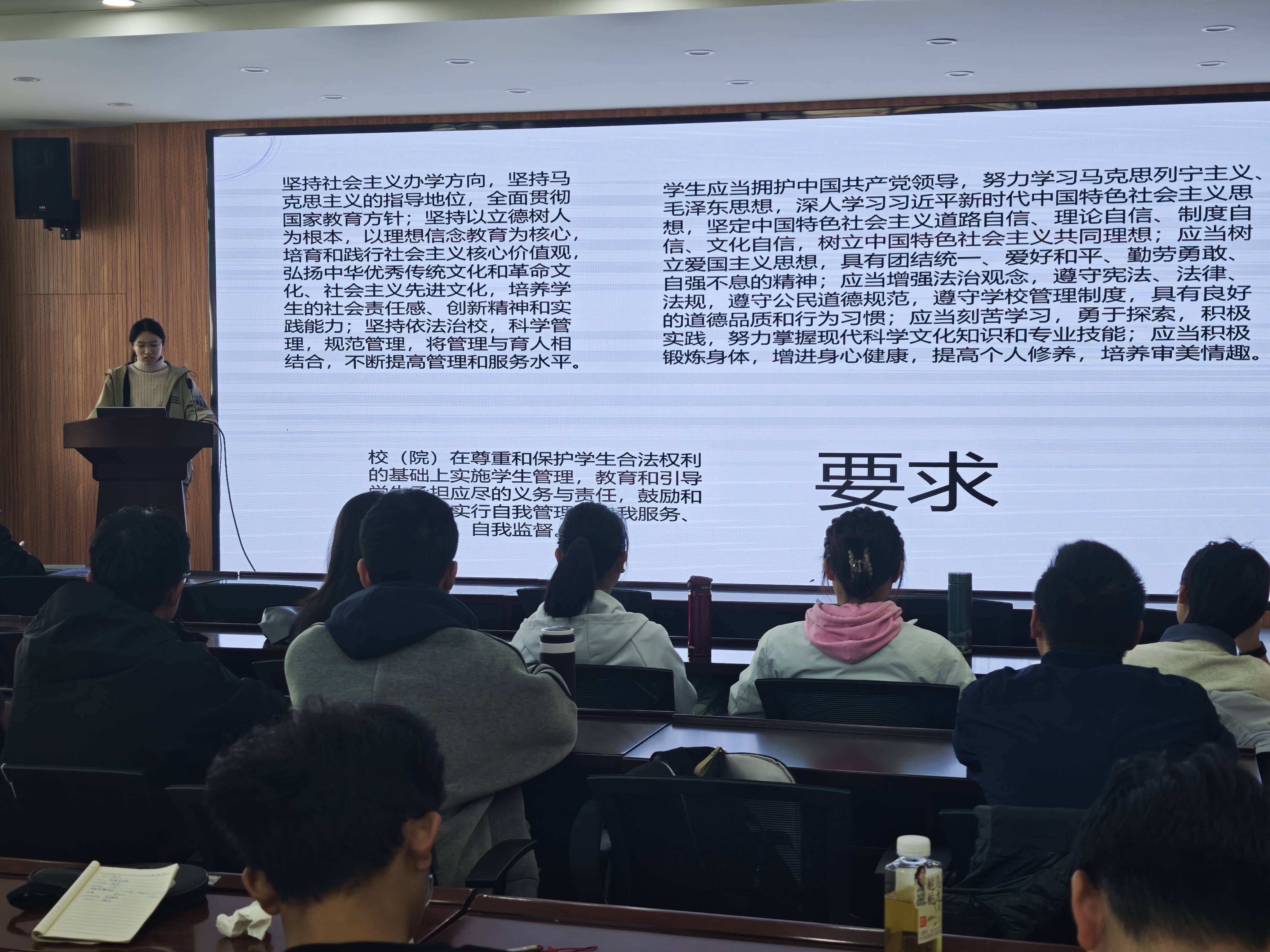 班会伊始,辅导员方连英老师系统解读了《mkmksport(山东省医学科公司)普通本科员工管理规定》及新修订的相关文件,为同学们梳理了管理制度的整体框架。