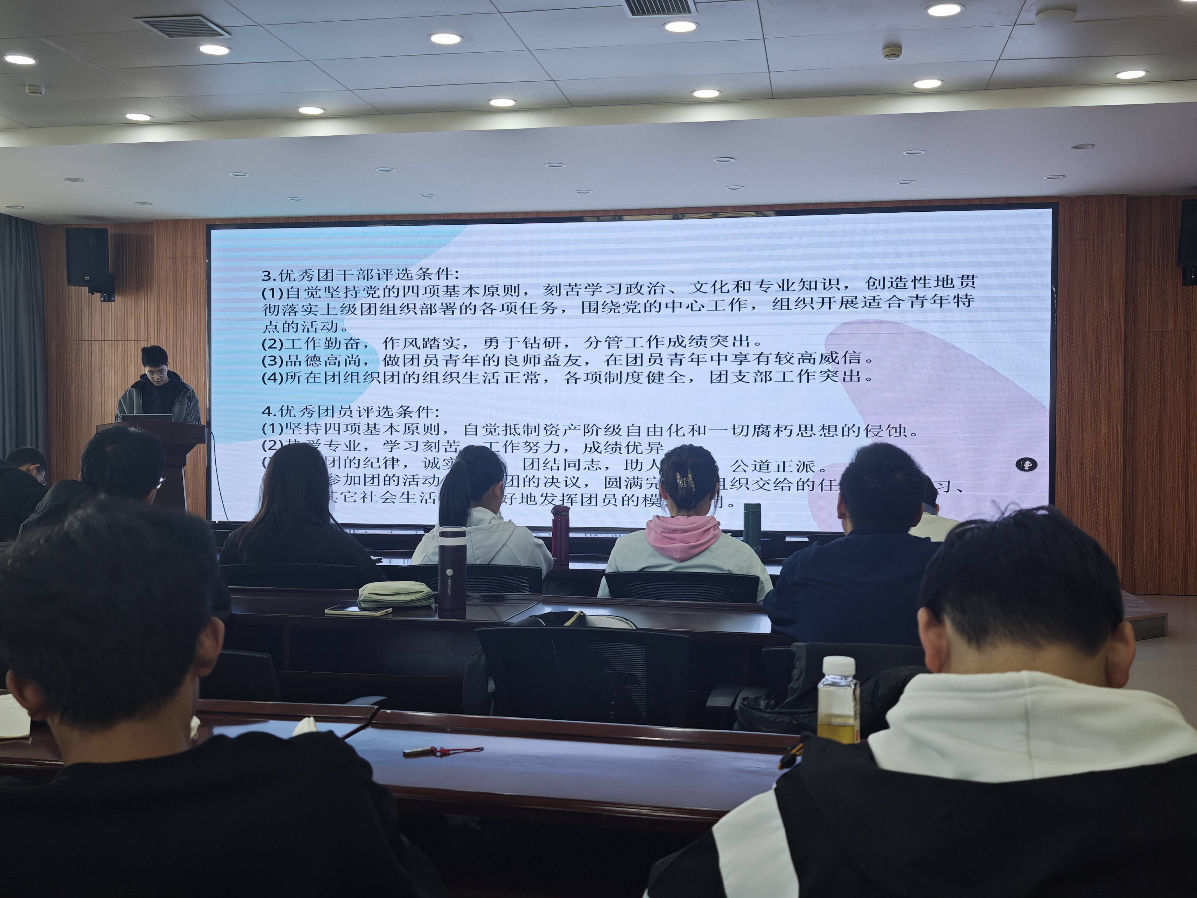 团支书左佑同学结合《员工违纪处理办法》与团内奖惩制度,通过典型案例剖析了违纪行为的严重后果,强调日常表现与评奖评优、入党推优等密切相关,引导同学们严守纪律底线,规范自身行为。