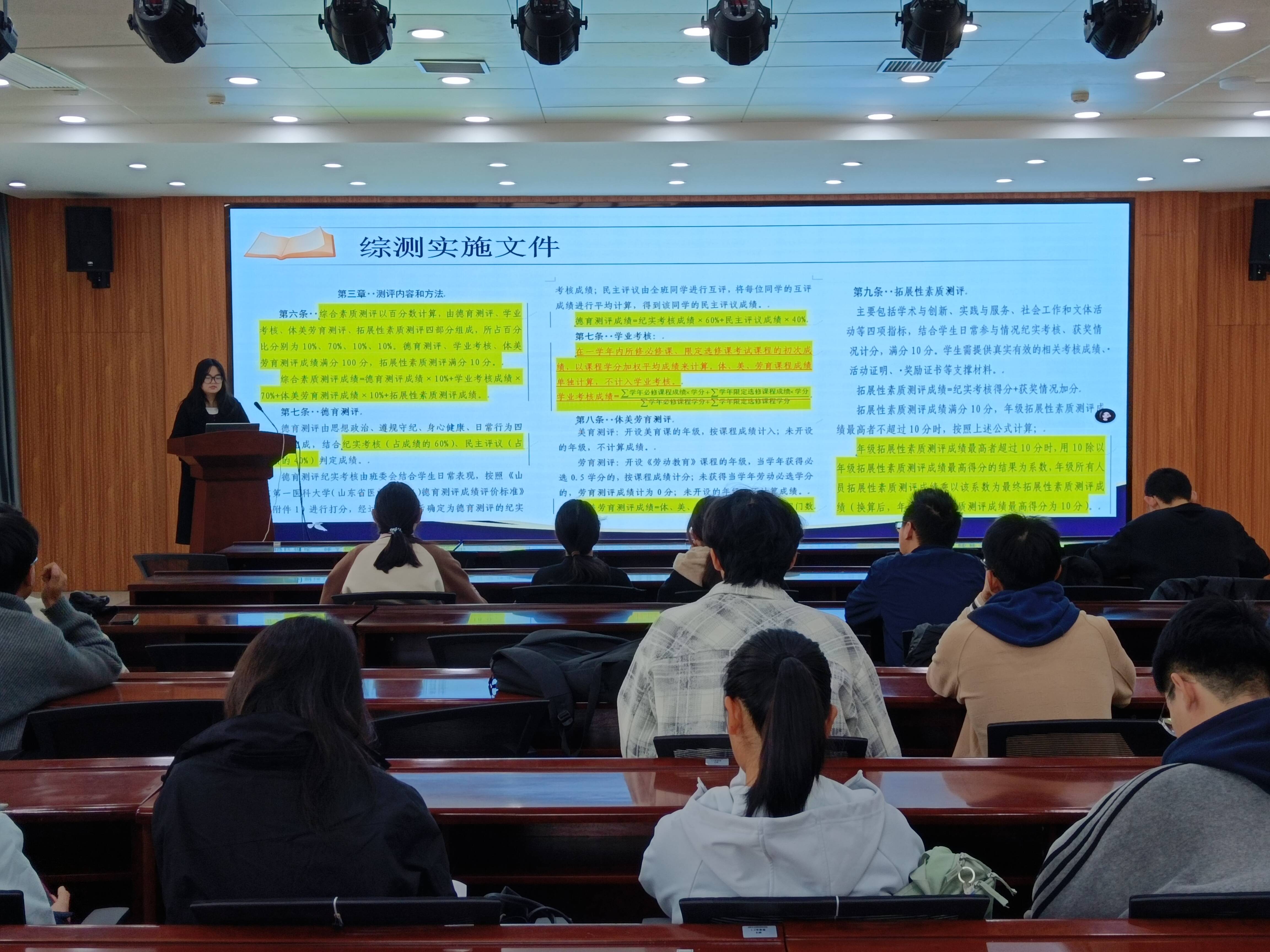 张志毅同学聚焦同学们关心和充满困惑的综测评分方面,从综测内容、德育测评、学业考核、体美劳育测评、拓展性素质测评纪实考核和获奖加分标准进行了详细解答。