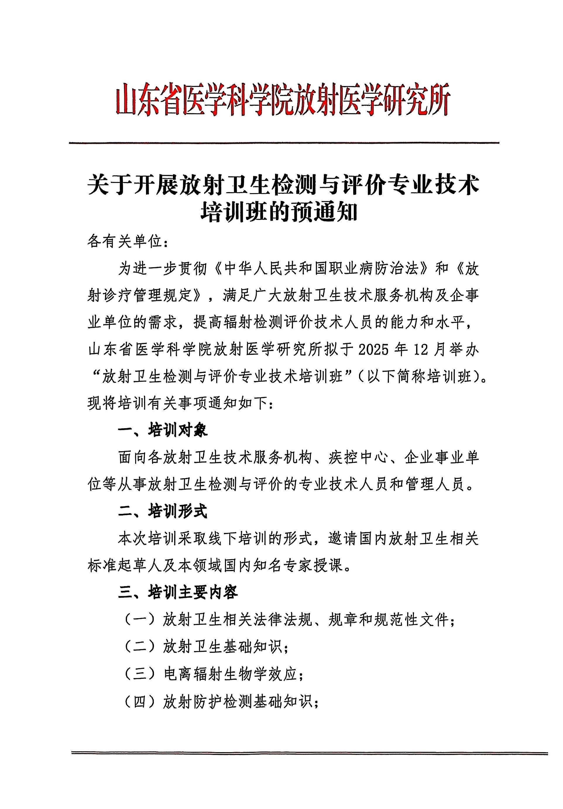 关于开展放射卫生检测与评价专业技术培训班的预通知