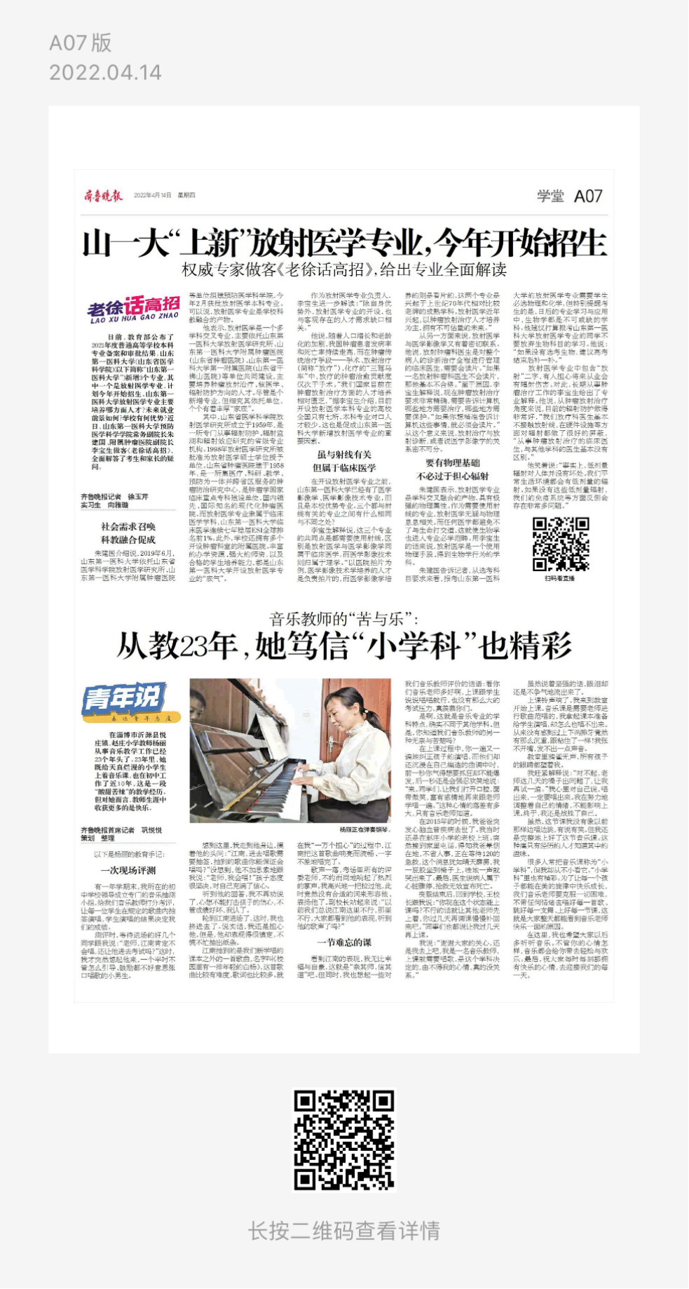 老徐话高招·经理访谈(总第236期)——山一大新增放射医学专业,学这个专业将来能做啥