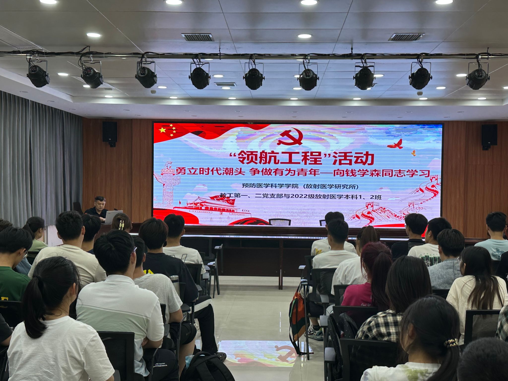 为深入学习党的二十大精神,扎实推进学习贯彻习近平新时代中国特色社会主义思想主题教育走深走实,进一步发挥基层党组织的思想引领作用,5月24日,mk体育教工第一、第二党支部与2022级放射医学本科1班、2班联合开展“勇立时代潮头 争做有为青年——向钱学森同志学习”主题领航活动。