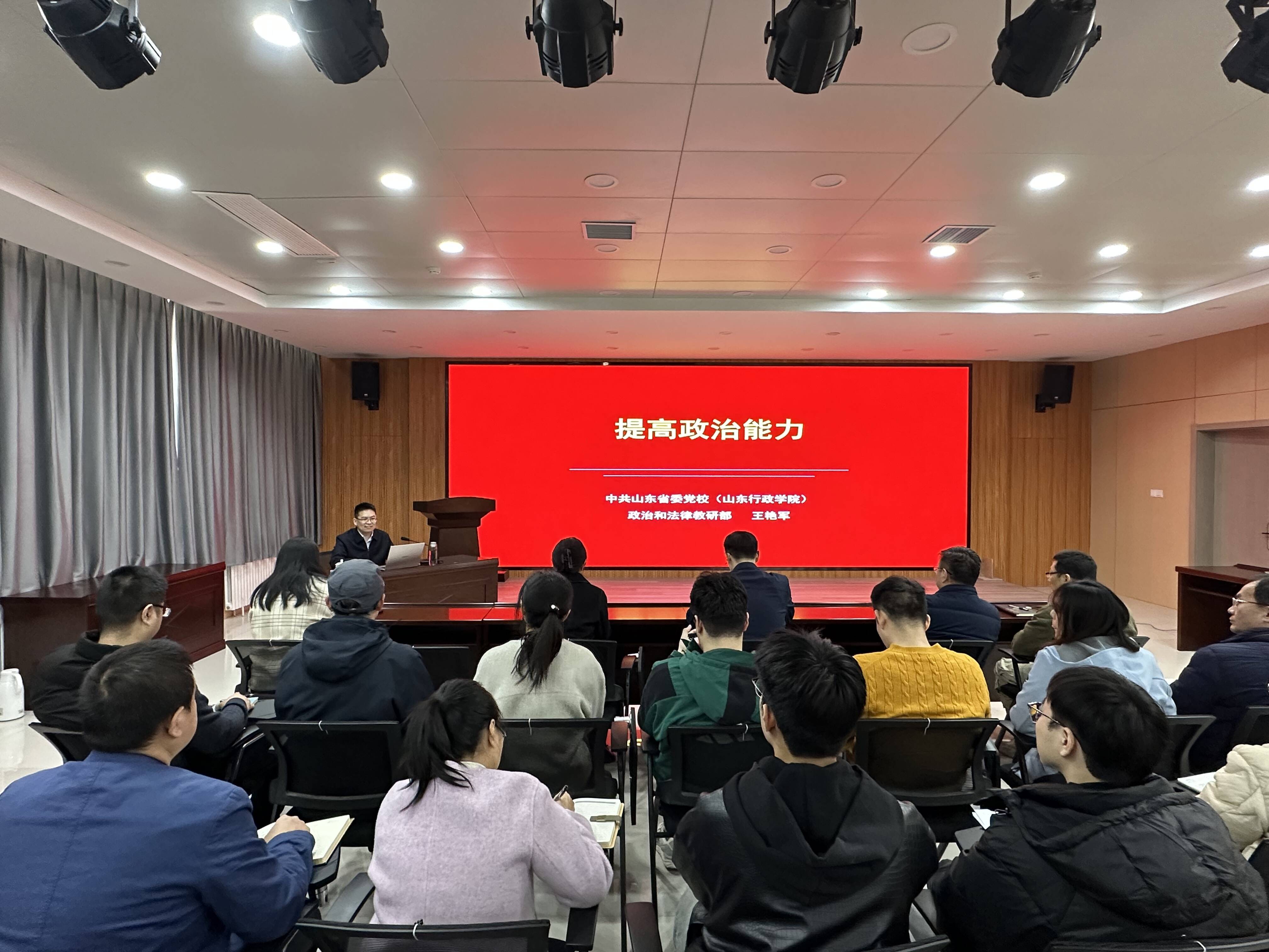 王艳军教授以“什么是政治能力、为什么提高政治能力和怎样提高政治能力”为切入点,从内容要求、形势要求和效果要求三个维度,深入阐述了提高政治能力的内在要求。王教授强调,提高政治能力的关键在于站稳立场、明辨是非、服务大局,不断增强政治判断力、政治领悟力、政治执行力,确保党中央政令畅通无阻,切实维护和实现中国人民与中华民族的根本利益。